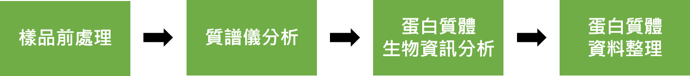 利用獨家層析管柱,純化樣品的磷酸化蛋白質,通過液相層析分離及質譜分析,大規模鑑定蛋白質的質譜分析數據,比較實驗組跟控制組間差異,並以系統生物學分析結果輔助了解蛋白質變化及生理代謝反應,以及分析磷酸化蛋白質體的磷酸化位點分析。 | 6-10週 |