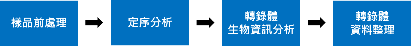 RNA-seqencing技術分析:利用高通量次世代定序,對樣品中的mRNA進行定序;次世代定序法已經是廣泛使用於分析大規模RNA數據的方法,RNA樣品透過cDNA建庫、定序、序列組裝及資料庫比對,揭露在特定狀態的基因表現組成,分析出個別基因表現量數據及差異。