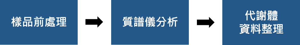 代謝物的組成最能代表生物體的表現型,能根據不同時間的代謝物消長資訊,描述出疾病、營養、藥物治療和基因突變的立即影響,對於病理研究、藥物開發等領域有所幫助。我們提供標靶代謝體學(targeted metabolomics),利用標準品、串聯質譜(MS/MS)圖譜與線上資料庫比對,進行代謝物結構分析。
