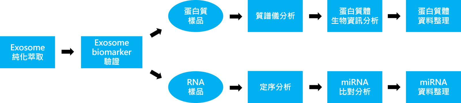 全臺唯一 一站式exosome樣本同源分析,同時分析蛋白質與miRNA。