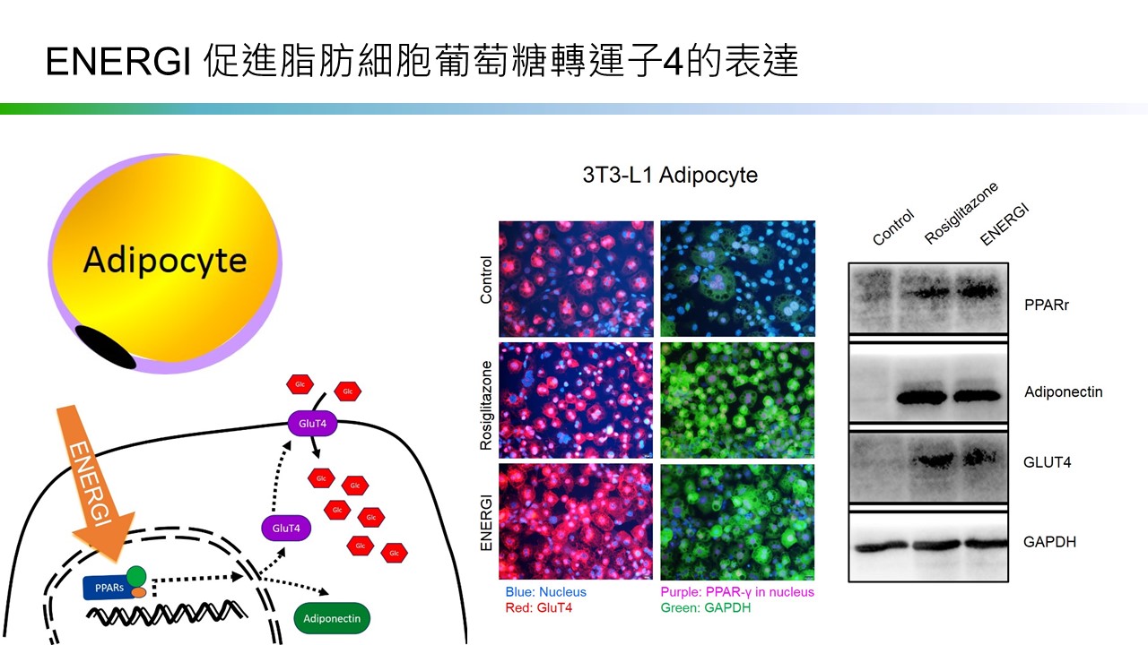 世界衛生組織對於代謝症候群的定義以糖尿病的面向為基準,造成代謝症候群的主要原因是對於胰島素具有阻抗性,造成體重、血糖、血脂及血壓過高。華安醫學開發的RENERGI-F702藥物,已證實可以刺激葡萄糖運送蛋白4 (GLUT4) 表達,促使GLUT4轉運至細胞膜上,增加細胞對於葡萄糖的吸收能力。第二型糖尿病模式鼠 (db/db mice) 的研究結果顯示,長期及短期餵食F702的糖尿病小鼠皆能增加葡萄糖耐受性,與TZD類降血糖藥物 (Rosiglitazone) 相較,不會造成額外的體重上升。
