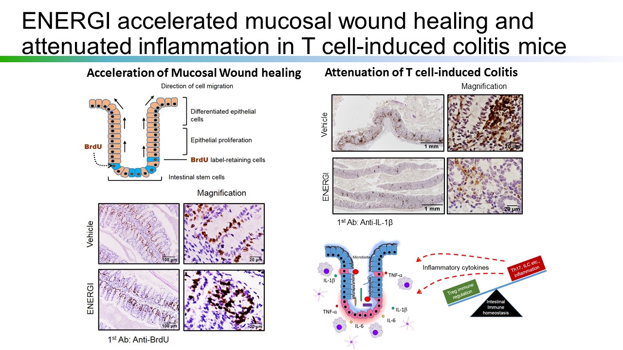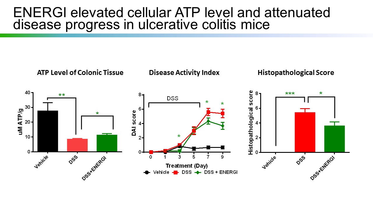 Energenesis Biomedical has carried out animal preclinical test evaluation on IBD, ascertaining the effect of ENERGI-F704 in alleviating intestinal-tract inflammation.