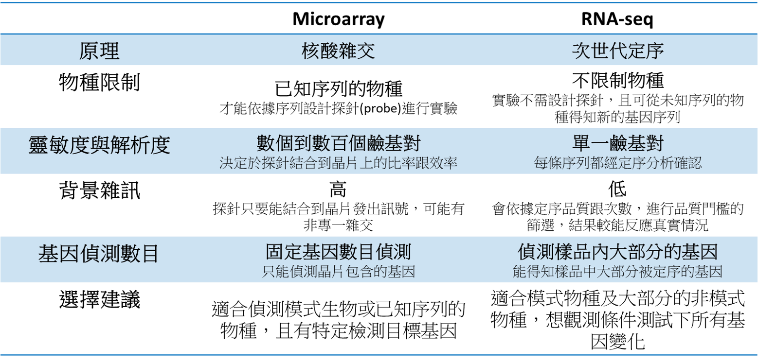 | RNAseq 與 Microarray該如何選擇? | ![]() |