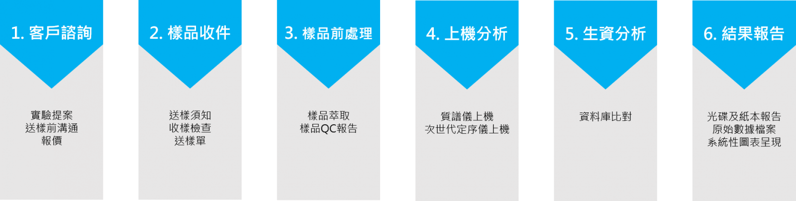 樣品前處理:我們提供樣品萃取及電泳服務,樣品處理完後會進行品質確認,確認樣品狀況適合實驗服務。