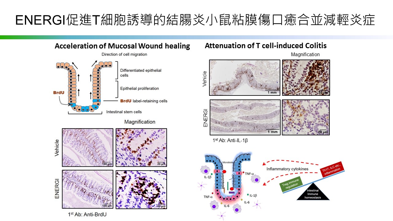 華安醫學目前已針對 IBD 完成動物臨床前實驗評估,發現 ENERGI-F704 具有減緩腸道發炎現象。